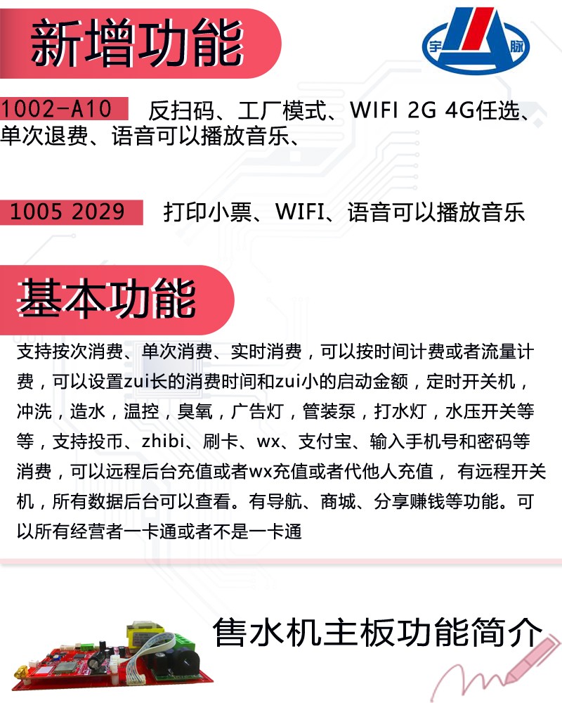 今天我就先和大家先来讲解一下宇脉主控板厂家自主研发的自助售水机主板的功能有哪些?