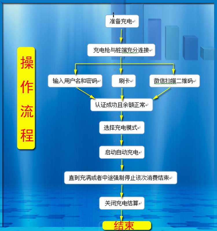 宇脉电动汽车充电桩如何启动设备的操作流程表电动汽车充电桩常用功能介绍:最大亮点:具有异常情况下记忆功能使用者可以自由设置消费方式具有急停开关动作保护,过载保护,短路保护远程后台设置、充值、挂失、分类管理、查询、报 表、一键导航、商城等。