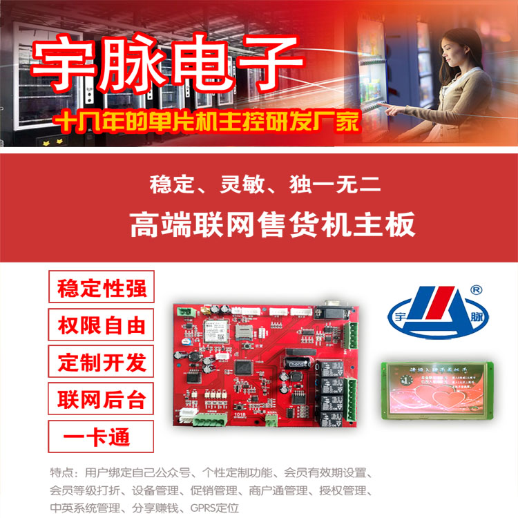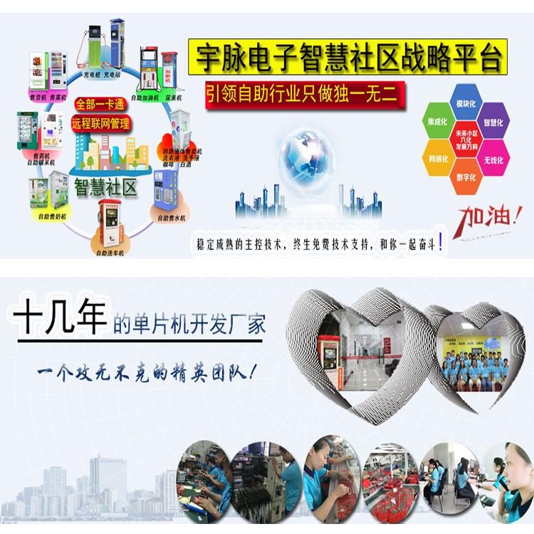 宇脉MCU单片机厂家,主控设备自助研发生产,多功能自助设备,支持定制开发,真正拥有自己的研发团队,主控设备不定期的升级,享受厂家免费升级功能,宇脉自助设备支持一卡通,统一后台管理。